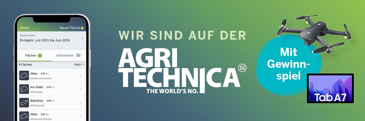 Die Agritechnica öffnet vom 12. bis 18. November ihre Tore und Sie können unsere Ackerprofi-Experten am AGRAVIS-Stand B18 in Halle 20 antreffen. Nutzen Sie die Chance, sich Ackerprofi live vorführen zu lassen und nehmen Sie am besten auch gleich an unserem Gewinnspiel teil. Neben einem Samsung Galaxy A7 Tablet, verlosen wir auch eine Drohne mit hochauflösender 4k-Kamera sowie GPS-Unterstützung und 5 Jahresabonnements für Ackerprofi!