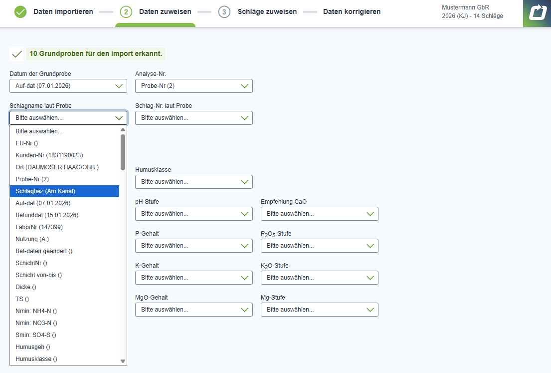 Um das zu ermöglichen, wurde der Grundprobenimporter – analog zum Schlagimport – dynamisiert.